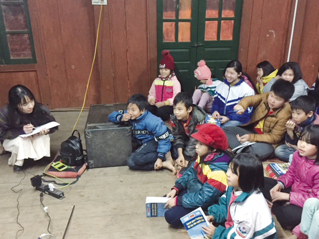 « C’est dans une ambiance joyeuse que les deux étudiantes ont fait réviser les enfants de Mu Cang Chai durant deux séances.