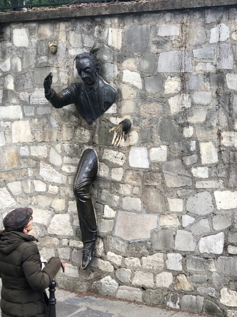 Après, on s’est baladés dans la place du Tertre juste derrière le Sacré-Cœur où des dizaines de dessinateurs professionnels se réunissent pour vendre leurs peintures. Puis, j’ai continué en visitant le château de Brouillard, en admirant le Passe-Muraille figé dans le mur de la Place Marcel Aymé – une statue réalisée pour rendre hommage à l’écrivain Marcel Aymé ; le quartier du marché Saint-Pierre au pied de Montmartre dans lesquelles se trouvent le plus grand rassemblement de magasins dédié au tissu ;