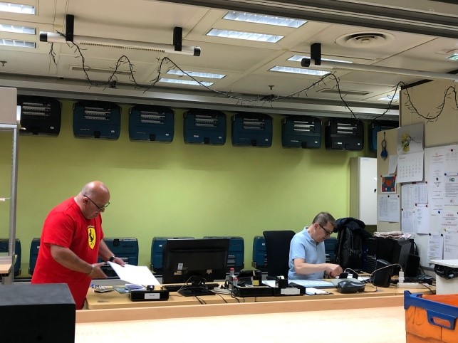 J’ai obtenu beaucoup d’informations sur le Télédoc – l’automate de distribution du courrier qui est le meilleur moyen pour gérer le courrier en interne avec le rail qui parcourt tous les bâtiments et tous les étages. Les courriers sont livrés par la Poste, puis ils sont triés, déposés dans les wagonnets qui circulent, passent dans les couloirs des sous-sols pour les distribuer.