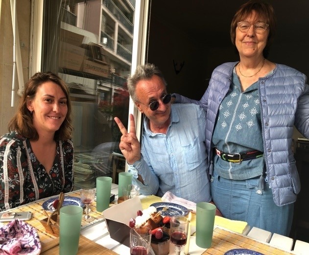 Puis, Alain m’a aidé à faire la carte jeune SNCF dans la gare Montparnasse et là-bas, j’ai fait la connaissance de sa fille, elle est rentrée après 6 mois de vacances. Extraordinaire ! Le soir, on a eu une soirée de rencontre, de partage avec de petits gâteaux pour l’anniversaire d’Alain.