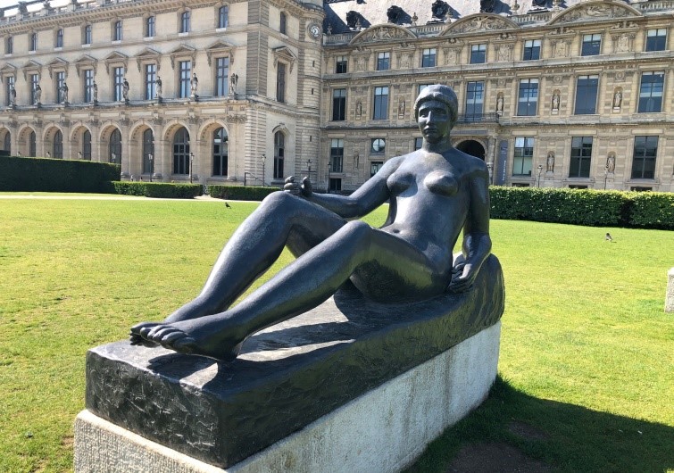 Vendredi 31 mai, parce que Marie-Luce était occupée, Alain, son mari qui est très gentil, accueillant m’a fait visiter. Je suis entrée dans le jardin des Tuileries – un lieu idéal de promenade pour admirer une vingtaine des plus belles sculptures de l’artiste Aristide MAILLOL. Ces sculptures nous ont donnés à voir pour la plupart, le corps d’une jeune femme que l’artiste n’a cessé d’inventer. Puis, on est passés devant le Louvre, entrés dans le Palais Royal qui abrite aujourd’hui le Conseil d’Etat, le Conseil constitutionnel et le Ministère de la Culture, un jardin, des galeries, un théâtre, des restaurants ainsi que des cafés.