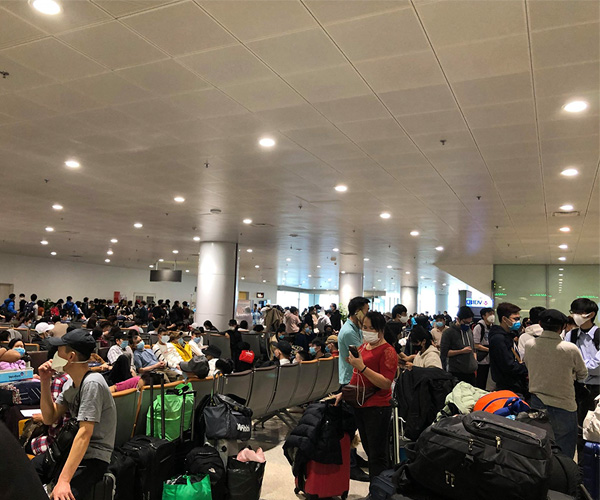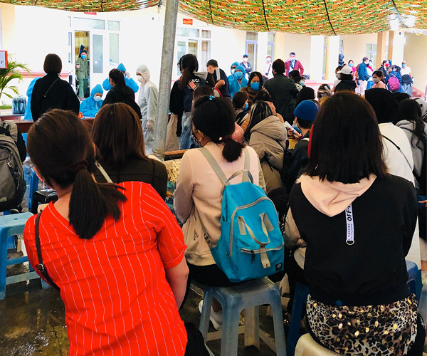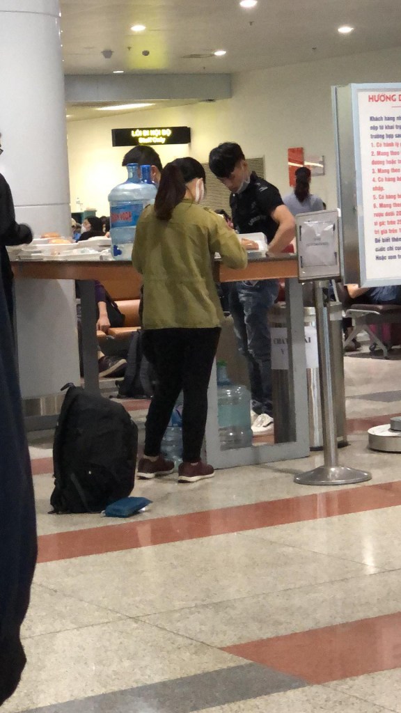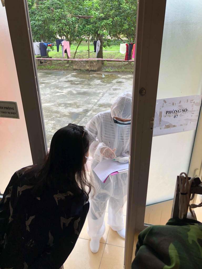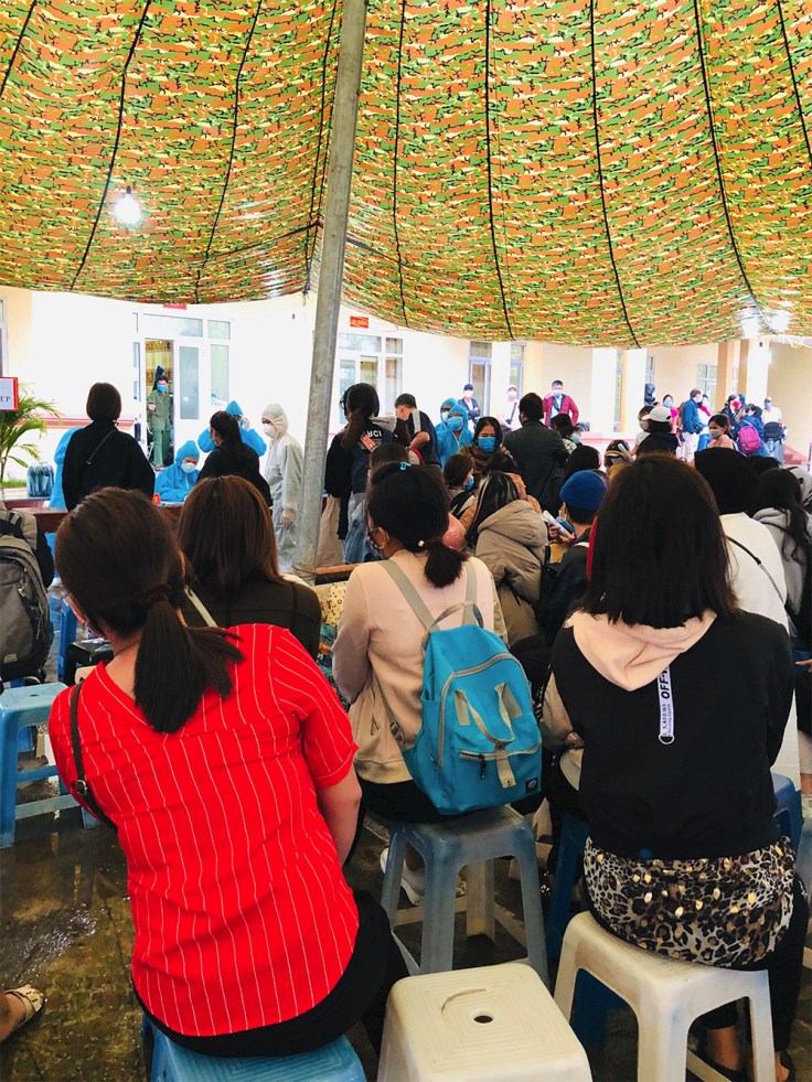 Je suis arrivée à l’aéroport Noi Bai le 18 mars vers 6 heures du matin. Avant d’arriver à l’aéroport, on doit remplir le formulaire sur le bilan de santé (il faut cocher sur oui/non sur les symptômes du virus). Quand on est arrivé, il faut faire une longue queue pour donner le passeport aux autorités. Ils vont le rendre seulement quand on est sorti du centre de quarantaine. Et puis, on doit faire le dépistage de virus sur place, cela prend seulement quelques minutes mais le temps d’attente dure environ deux heures.