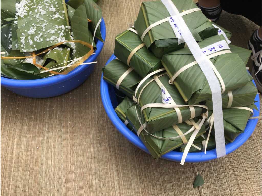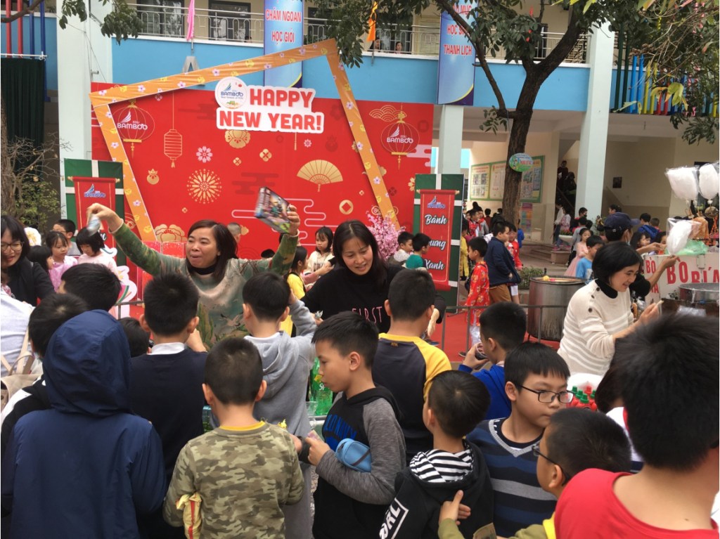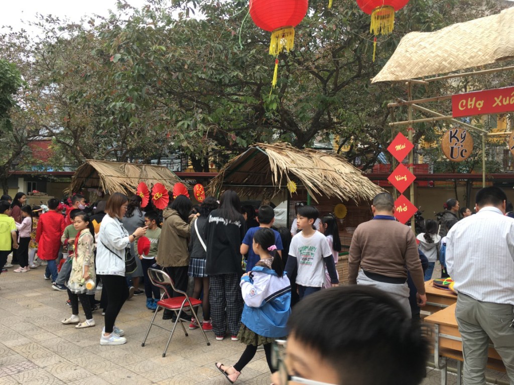 « Aujourd’hui, 26 janvier, on organise un marché du Têt », nous a écrit notre amie Phuong. « Les élèves, les professeurs, les parents vendent des produits très variés : des jouets, des livres, de la nourriture…. Les élèves apprennent à faire des BANH TRUNG. C’est tellement animé dans la cour de l’école. On est tous très heureux ! ».