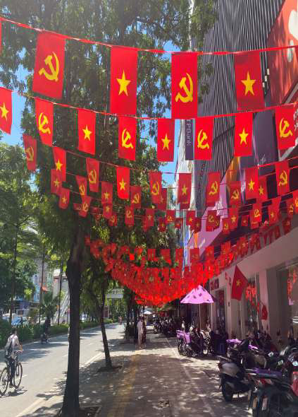 Partout dans la capitale, Hanoï, les rues avaient été décorées (photo de notre ami Binh) et un char de parade arborant une grande statue de Ho Chi Minh faisait partie du défilé.© Nhac NGUYEN / AFP. La gigantesque parade a réuni 40 000 militaires et civils. Des centaines de milliers de personnes y ont assisté, dont beaucoup avaient campé toute la nuit dans des rues bondées pour être aux premières loges.